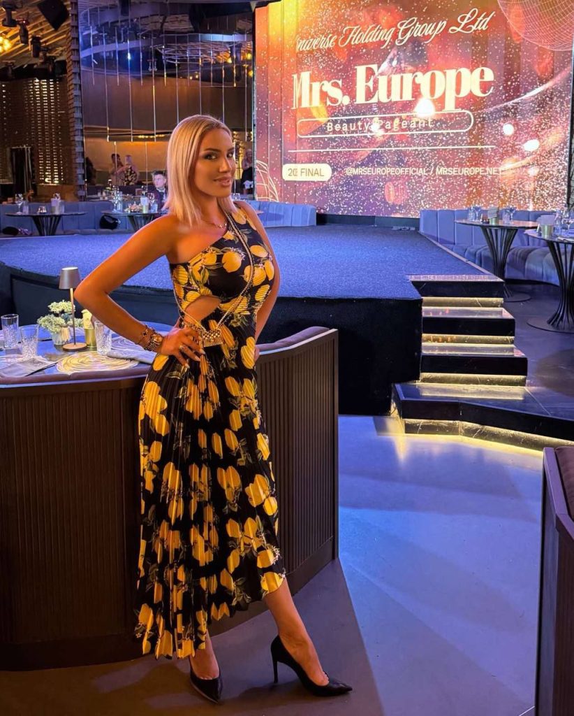 Алекс Йорданова блесна със стил и елегантност сред гостите, като за пореден път доказа, че съчетава красота, интелект и харизма. Финалът на конкурса събра представители на бизнес, мода и обществен елит, а сцената бе озарена от десетки красавици, борещи се за титлата Mrs. Europe.